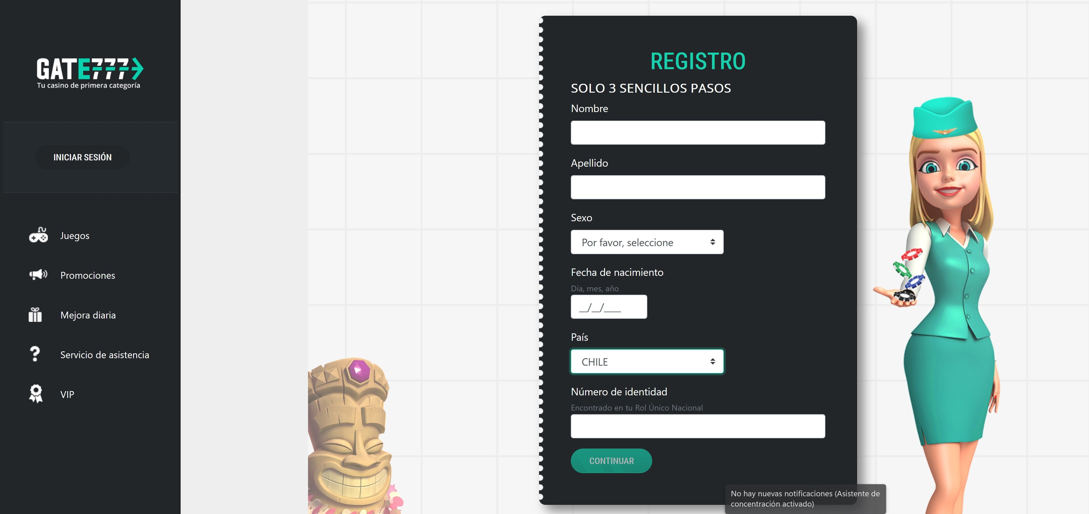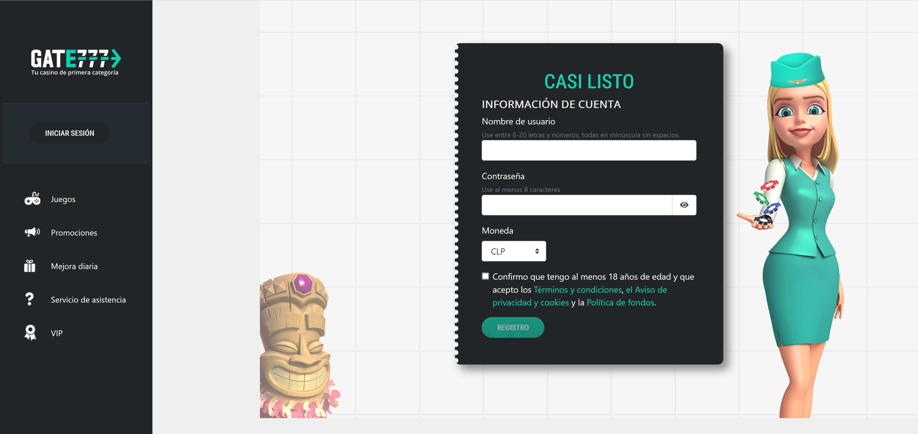 Como observación positiva, para registrarte en Gate 777 tendrás que entregar tu RUN, algo que no todos los casinos online se preocupan de hacer. Más adelante, si quieres realizar un depósito o retirar tus fondos, tendrás que contactar a support@gate777.com adjuntando algún documento que corrobore tu identidad.