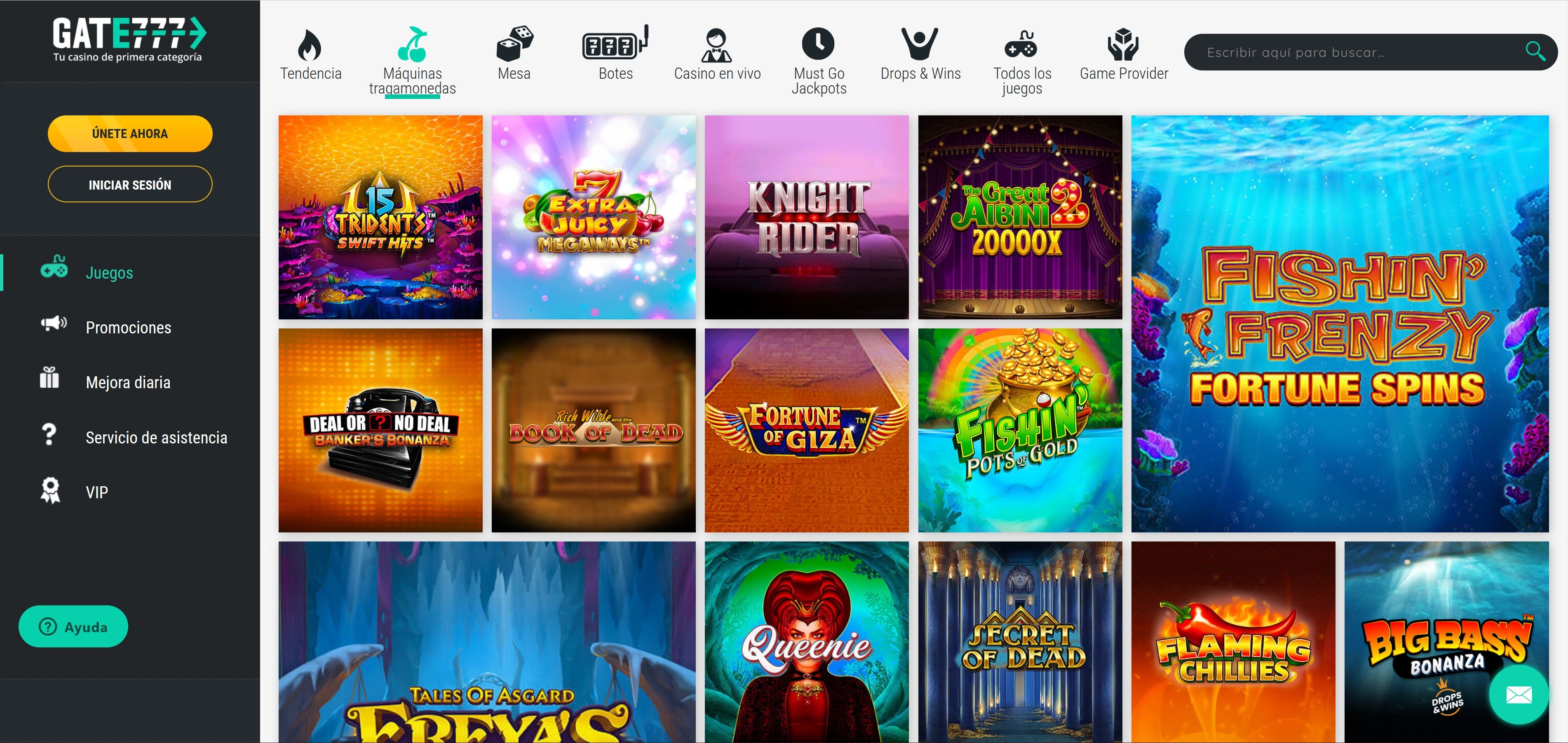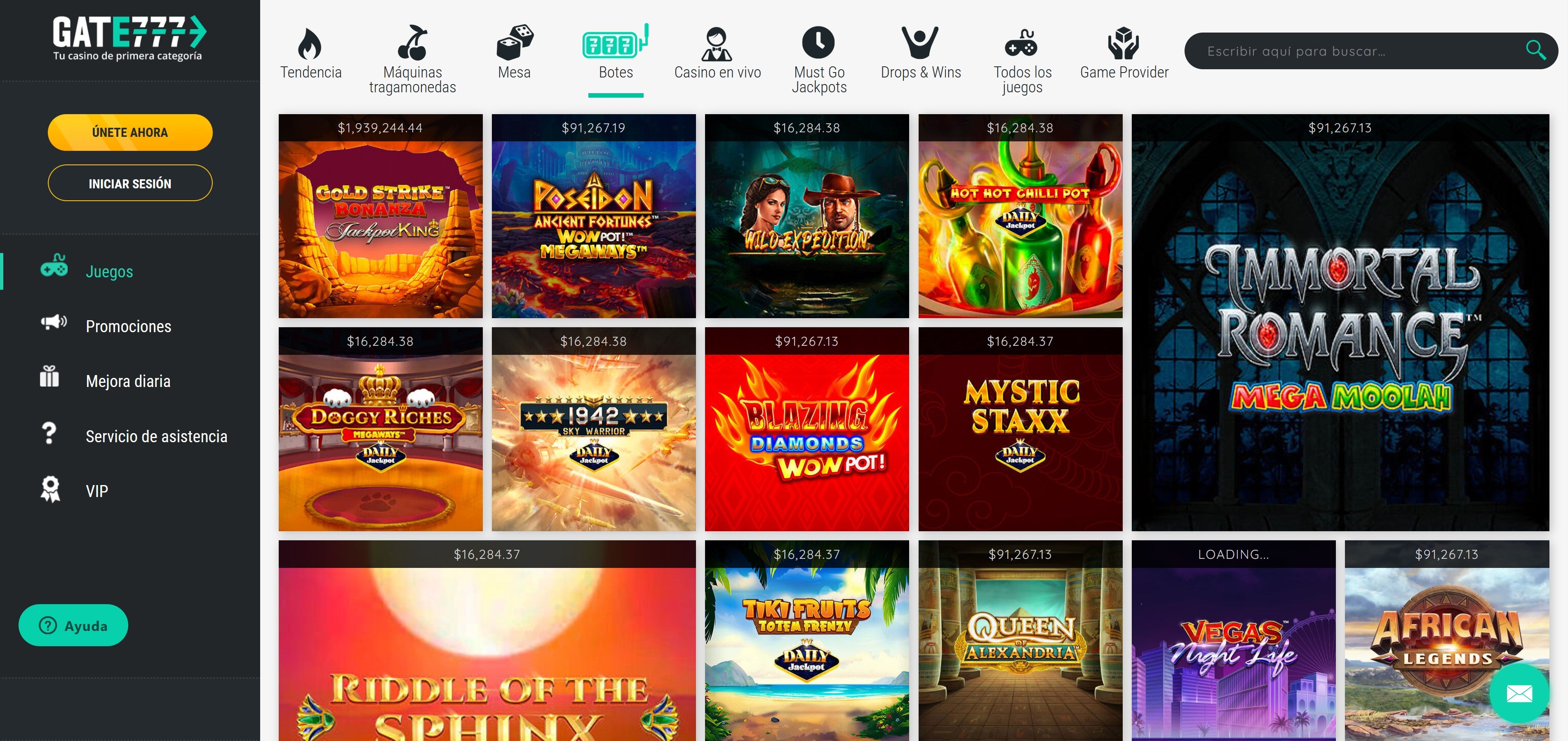 Un punto a favor de Gate777 Chile es la posibilidad de probar algunos de sus títulos en su versión demo. Esta es una característica que no todos los casinos ofrecen, por lo que puedes probar cualquier tragamonedas sin tener que arriesgar tu dinero. Los títulos cargan rápido, independiente de si accedes a Gate777 casino online desde un dispositivo móvil o computador, y puedes usar el buscador de juegos o revisar las categorías en pocos pasos.