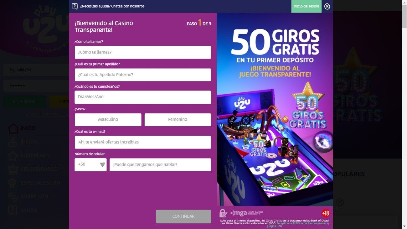 Playuzu presume de ser “el casino transparente” y te darás cuenta de lo intuitivo y rápido que es abrirse una cuenta en él: